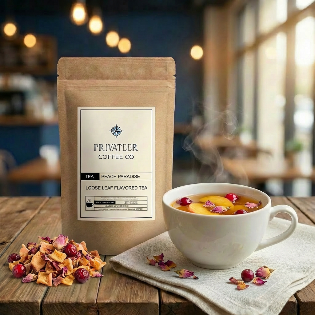 This herbal blend is fruity, smooth, aromatic, and sweet. Fruity peach, sour cranberry and smooth notes of rose, creates paradise in a cup. A fantastic and refreshing cup both hot and cold.